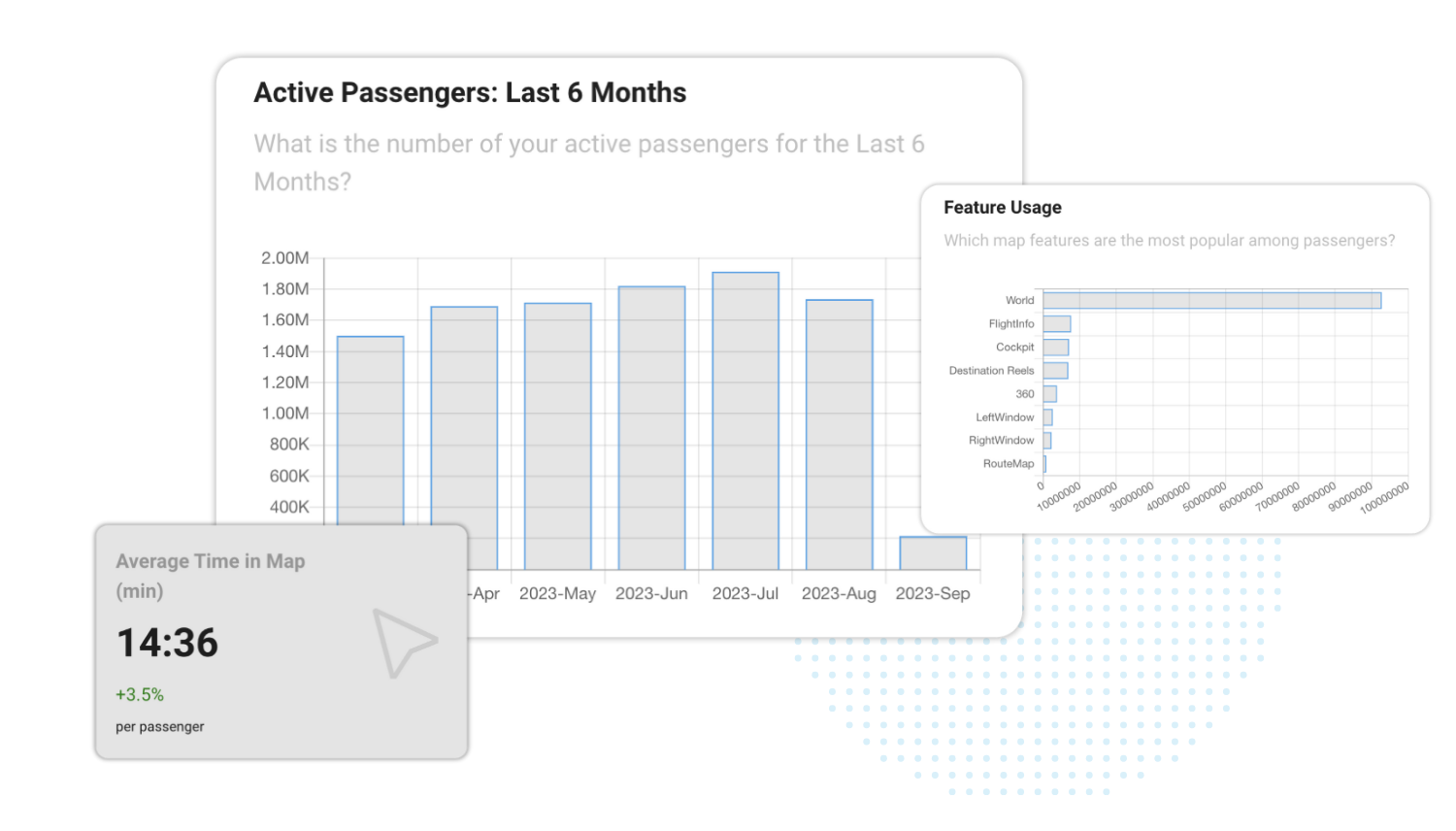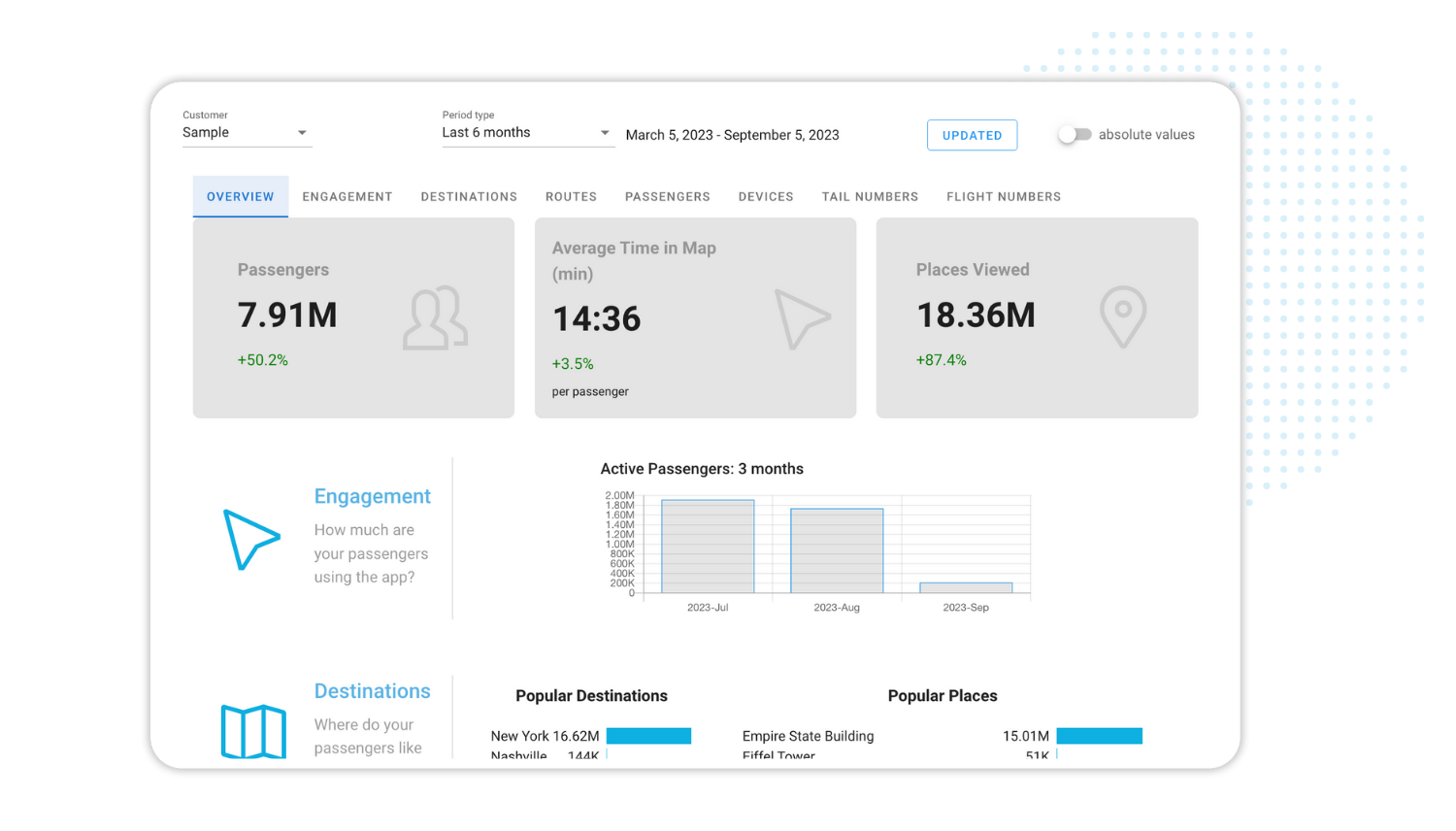 Easily see how many passengers are engaging with your maps, how much time they’re spending, and which features they’re using the most.