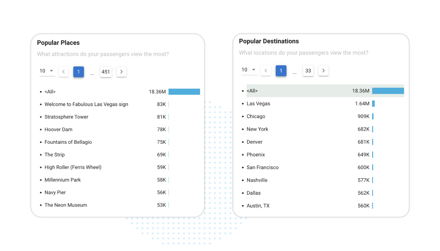 Understand where your passengers are exploring with a breakdown of the most popular destinations and places, including which routes they’re clicking “Book Now” on.